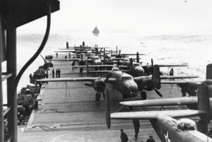 L’USS Hornet, en route vers Tokyo, avec les 16 bombardiers B-25 du raid Doolittle sécurisés sur son pont d’envol (6) – Copie3