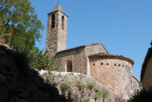 L’église possède un beau chevet semi-circulaire, en surplomb du village.