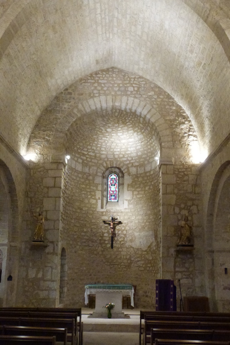 Nef de l’église en berceau brisé avec doubleau à double ressaut, abside centrale. (2)