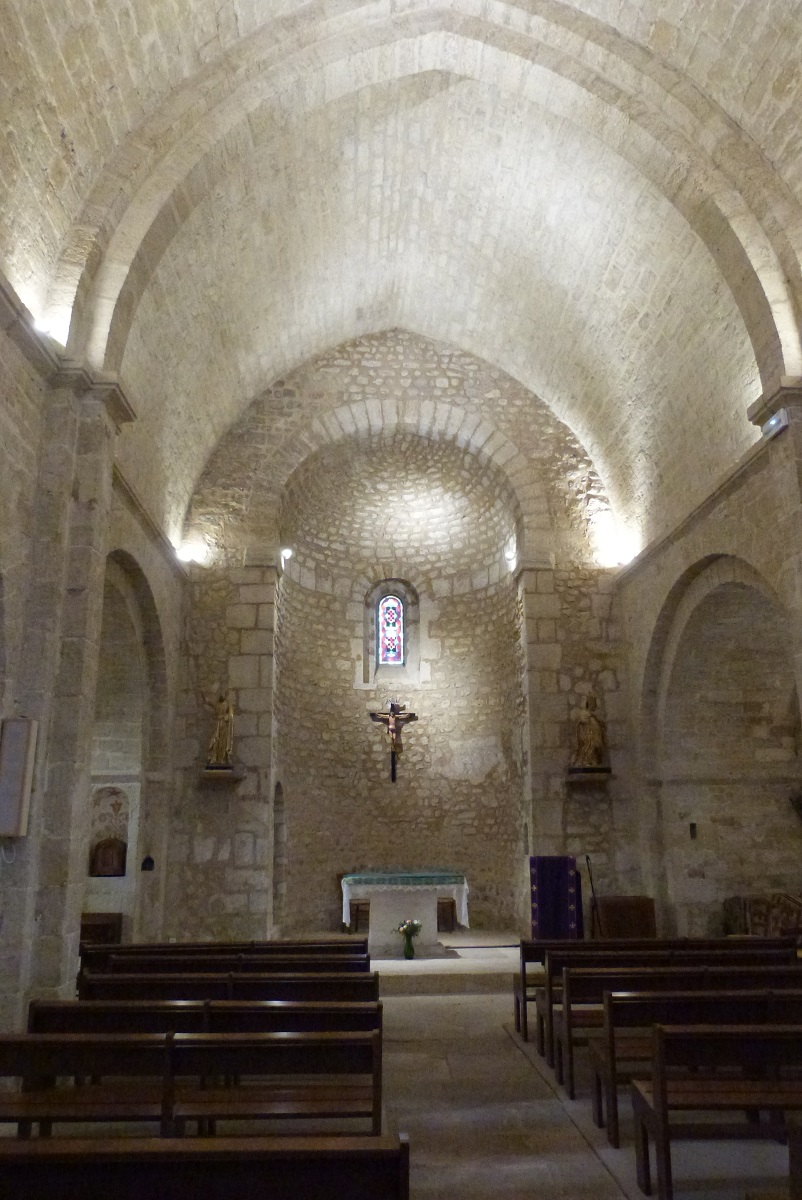 Nef de l’église en berceau brisé avec doubleau à double ressaut, abside centrale.