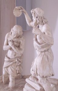 Saint-Jean Baptiste Jean-Le-Baptiste est né dans la dernière décennie avant J.-C. Il est mort vers 28 ou 29 après J.-C. De son nom de naissance « Yohanan », il fut un personnage majeur du Christianisme, et prophète du Nouveau Testament et de l’Islam. Il fut un prédicateur juif de l’époque de Jésus de Nazareth. Jésus aurait, semble-t-il, été son contemporain et aurait vécu un temps dans son entourage. L’Évangile selon Jean situe l’action de Baptiste sur les rives du Jourdain et à Béthanie, au-delà du Jourdain. Les Évangiles synoptiques (les trois Évangiles de Saint Matthieu, de Saint Marc, et de Saint Luc)) font coïncider le début de l’activité de Jésus avec l’arrestation de Jean. Saint-Jean-Baptiste Saint Jean-Baptiste est, pour les Chrétiens, le dernier des prophètes d’Israël. Il est celui qui annonce et qui prépare la venue du Christ, le Messie attendu pour la fin des temps. NAISSANCE ET FAMILLE Jean-Le-Baptiste naît un 24 juin (six mois avant la naissance du Christ). Il est le fils de Zacharie et d’Élisabeth, une parente de la Vierge Marie. Jean-Baptiste est donc le cousin de Jésus. Son père, Zacharie, était au temps d’Hérode le Grand un prêtre du Temple. Il devait à tour de rôle faire le service du temple une semaine durant. Sa mère, Élisabeth, était une descendante d’Aaron, le frère de Moïse. Tous deux étaient bons et exemplaires. Mais le couple n’avait pas d’enfants, Élisabeth n’étant plus toute jeune et étant devenue stérile. Un jour, l’ange Gabriel vint annoncer à Zacharie que son épouse allait tomber enceinte d’un garçon qu’il devrait prénommer Jean, et qui serait choisi par Dieu. Tout d’abord, Zacharie ne crut pas l’ange messager du Seigneur. Ce dernier le condamna alors au silence… Zacharie ne retrouvera sa voix qu’à la naissance de son fils Jean, pour prononcer le « Benedictus » (« qui venit in nomine Domini », « Béni celui qui vient au nom du Seigneur »). L’ange prédit à cet enfant une destinée extraordinaire, celle d’un prophète digne d’Élie (un des prophètes majeurs d’Israël). Au sixième mois de la grossesse d’Élisabeth, l’ange Gabriel vint annoncer à Marie, une parente d’Élisabeth, qu’elle aussi aurait un enfant. Après leur naissance, les deux enfants vécurent une période troublée, une époque où, sur ordre d’Hérode, les enfants de moins de deux ans étaient systématiquement massacrés. Alors Marie cacha son enfant dans une mangeoire. De son côté, Élisabeth emporta Jean dans la montagne. C’est ainsi que Jean vécut au milieu des bêtes sauvages, en se nourrissant (d’après Matthieu) de « sauterelles et de miel sauvage ». JEAN, ANACHORÈTE, PRÉDICATEUR ET BAPTISTE… Saint-Jean-Baptiste Devenu adulte, Jean, vêtu d’un vêtement fait de poils de chameau et d’un pagne de peau autour des reins, partit dans le désert pour mener une vie d’ermite. Détaché de tout, il se consacra à la contemplation, et commença son action de prédicateur : il annonça et prépara la venue du Messie. Là, au bord du Jourdain, entouré de nombreux disciples, il pratiqua le rite du baptême. La période primordiale de la vie de Jean-Baptiste fut sa rencontre avec Jésus, qu’il baptisa dans les eaux du Jourdain. Cet événement marqua la fin de la prédication de Jean, car il reconnut en Jésus le Messie annoncé. Saint-Jean-Baptiste A l’époque où Ponce Pilate était gouverneur de Judée (dans la quinzième année du gouvernement de Tibère, soit autour des années 28-29 de notre ère) commença véritablement la mission de Jean-Le-Baptiste, qui prêchait dans toute la région du Jourdain. Selon l’historien Flavius Josèphe, Jean était un homme de bien qui incitait les juifs à être justes les uns envers les autres, Il y était décrit comme un grand orateur qui attirait les foules. Lorsque Jean-Baptiste commença sa mission, les ablutions étaient une coutume habituelle aux juifs, comme à toutes les religions d’orient. Depuis les origines, on pensait que l’eau avait une qualité purificatrice et régénératrice. SA MORT Le Royaume de Judée était, à l’époque de Jean-Baptiste, sous occupation romaine. La Galilée était gouvernée par Hérode Antipas qui, irrité par les critiques de Jean qui l’accusait d’avoir épousé la femme de son frère, le fit arrêter à Machéronte, près de la mer Morte. Dans les évangiles, Marc raconte les évènements : « En effet, c’est Hérode qui envoya arrêter Jean et le fit enchainer en prison, à cause d’Hériodade, la femme de son frère Philippe, qu’il avait épousée, ce qui fit scandale. Car Jean dit à Hérode : « il ne t’est pas permis d’épouser la femme de ton frère ». Quant à Hériodade, elle était furieuse contre lui et voulait le tuer. A la demande de Salomé (la fille d’Hériodade), Hérode le fit décapiter lors d’un banquet. Sa tête fut alors présentée sur un plateau, avant que ses disciples ne la réclament. SON CULTE Jean-Baptiste est fêté le 24 juin, jour de sa naissance, contrairement à la coutume qui veut que les Saints soient fêtés à la date anniversaire de leur mort. Salomé enterra la tête de Jean au palais de Jérusalem. Celle-ci fut exhumée au IVème siècle par des fidèles qui la menèrent sur le Bosphore. En 391, l’empereur Théodose (celui qui officialisa le Christianisme comme religion unique dans tout l’Empire Romain) la transporta à Constantinople. Elle aurait été découverte lors de la Quatrième Croisade par le chanoine Vallon de Sarton, qui la remit à l’évêque d’Amiens. Selon la tradition musulmane, la tête de Jean-Baptiste serait conservée à Damas, en Syrie, dans la grande mosquée de la ville, la mosquée des Omeyyades ; celle-ci, située à l’endroit même où se trouvait l’ancienne cathédrale Saint-Jean-Baptiste, érigée en 379 par l’empereur Théodose. C’est un cas unique de la présence d