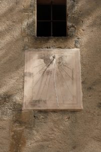 Le cadran solaire est surmonté d’une stèle représentant, gravée dans la pierre, une croix latine sur une croix pattée.