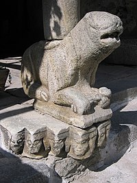 Le Coulobre statufié à la porte de l’église de Saint-Véran.