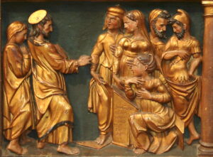 Madeleine écoute Jésus, retable dans la basilique de Saint-Maximin.