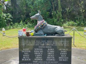 Le cimetière national de chiens de guerre, à la base navale de Guam, est un hommage aux braves chiens de guerre (principalement Doberman Pinschers) qui servirent en 1944 avec le Corps des Marines américains, lors de la deuxième bataille de Guam. Ces chiens jouèrent un rôle crucial dans la bataille, et beaucoup donnèrent leur vie aux côtés des Marines. Initialement enterrées à Asan, les tombes des chiens furent oubliées au fil du temps. Mais grâce à William Putney (le commandant du 3ème peloton de chiens de guerre) et au « United Doberman Club », un mémorial fut créé pour les honorer.