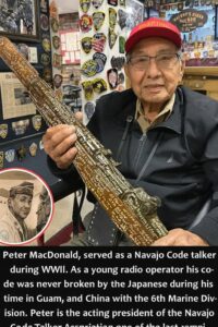 En 1944, Peter MacDonald n’était qu’un jeune opérateur navajo. Il servit à Guam et en Chine avec la 6ème division de Marines, mais ne portait pas d’arme. En 1944, Peter MacDonald n’était qu’un jeune opérateur radio navajo. Son pouvoir, il le tenait dans les mots qu’il prononçait, et qu’aucun ennemi ne put jamais décoder. Il avait pour mission d’envoyer des messages cruciaux sur le champ de bataille dans un code secret. Un code entièrement appuyé sur la langue navajo, rapide, complexe, et non écrite. Les japonais brisèrent tous les codes chiffrés excepté celui-ci, qui fut inventé par les soldats amérindiens. Ils échouèrent à chaque fois, et aucun message envoyé en code navajo ne fut jamais craqué. Le Navajo n’était pas la seule langue utilisée : il y eut aussi le Mohawk, le Choctaw, le Seminole, le Pawnee, et l’Iroquois… Une douzaine de langues autochtones participèrent à assurer la victoire des Alliés. Chacune était devenue une arme. Aujourd’hui âgé de presque 100 ans, Peter MacDonald demeure l’un des derniers des « Codes Talker » (parleur de code) survivants. Il est président de l’Association des parleurs de code navajo, et représente la mémoire de ceux qui ont été oubliés dans les livres d’histoire.