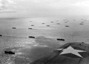 – 4 croiseurs, 17 destroyers, 8 dragueurs de mines, 15 navires de débarquement pour l’infanterie, 3 tankers navires anti-aériens, et 140 navires de transport.