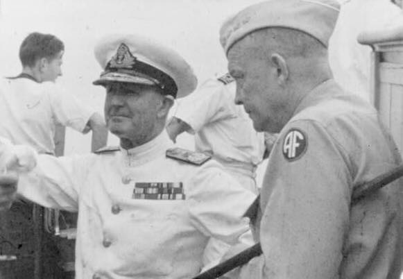 Admiral Andrew Cunningham and General Dwight D. Eisenhower on board HMS Hambledon L37