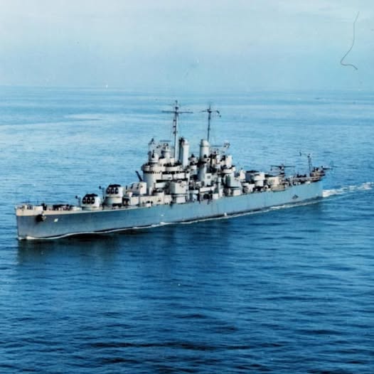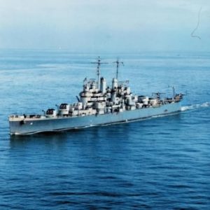 Le croiseur léger USS Cleveland (CL-55) en mer à la fin de 1942.