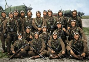Les héros sacrifiés du « Vent Divin » Les Kamikazes – Des héros sacrifiés, une valeur militaire contestée La photographie d’un groupe de pilotes kamikazes japonais, prise à l’aérodrome de Chōshi en novembre 1944, est un témoignage bouleversant d’une stratégie désespérée employée par le Japon impérial durant la Seconde Guerre mondiale. Parmi les 18 pilotes présents sur l’image, un seul a survécu : Toshio Yoshitake (il a échappé à la mort parce que son avion a été abattu par la DCA américaine avant d’atteindre sa cible). Les kamikazes, littéralement « Vents Divins », étaient des pilotes-suicide dont la mission consistait à s’écraser volontairement sur les navires ennemis (en particulier les porte-avions américains), au prix de leur vie. Cette action, qui s’inscrit dans l’esprit de sacrifice et de loyauté inconditionnelle envers l’empereur, pose la question de son efficacité réelle et de sa valeur militaire. Sur le plan tactique, les kamikazes infligèrent des pertes considérables aux forces alliées, notamment durant la bataille d’Okinawa, en 1945. Plusieurs navires alliés furent gravement endommagés ou coulés par ces attaques suicides. L’ennemi dut renforcer ses défenses aériennes, et fut forcé de développer de nouvelles stratégies pour contrer cette menace imprévisible. Cependant, l’impact stratégique global des kamikazes fut souvent jugé limité. Les pertes matérielles causées par ces attaques n’inversèrent pas le cours de la guerre, et leur coût humain fut extrêmement élevé. Des centaines de jeunes pilotes furent sacrifiés dans des missions où la probabilité de réussite était faible, face à une force ennemie technologiquement supérieure, et de mieux en mieux préparée à contrer ces attaques. De plus, sur le plan psychologique, si les kamikazes étaient perçus par certains comme des héros, leur utilisation massive révéla également la situation désespérée dans laquelle se trouvait le Japon à la fin du conflit. Les pilotes kamikazes étaient souvent de jeunes recrues à peine formées, expédiées au front avec très peu d’expérience, ce qui posait des questions sur le manque de préparation et la gestion des ressources humaines du Japon en temps de guerre. En conclusion, bien que les pilotes kamikazes aient incarné un certain idéal de sacrifice pour la patrie, leur efficacité militaire resta débattue. Ils causèrent certes des dégâts aux forces alliées, mais au prix d’un nombre démesuré de vies japonaises, et sans impact décisif sur le cours de la guerre.