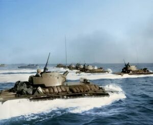 Amtracs blindés des Marines en formation – le 1er avril 1945, Okinawa